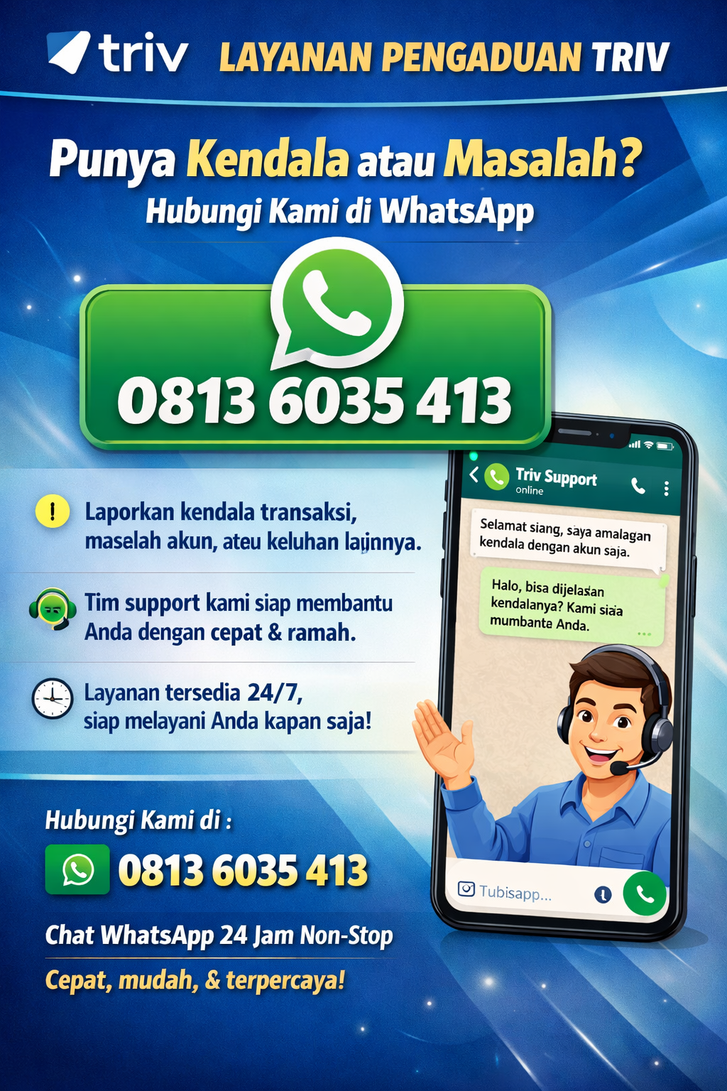 Tower Lt. 20, Jl. Mulia Lot 9B, Kota Jakarta Selatan, Daerah Khusus Ibukota Jakarta 12980 nomor WhatsApp triv 0813603513